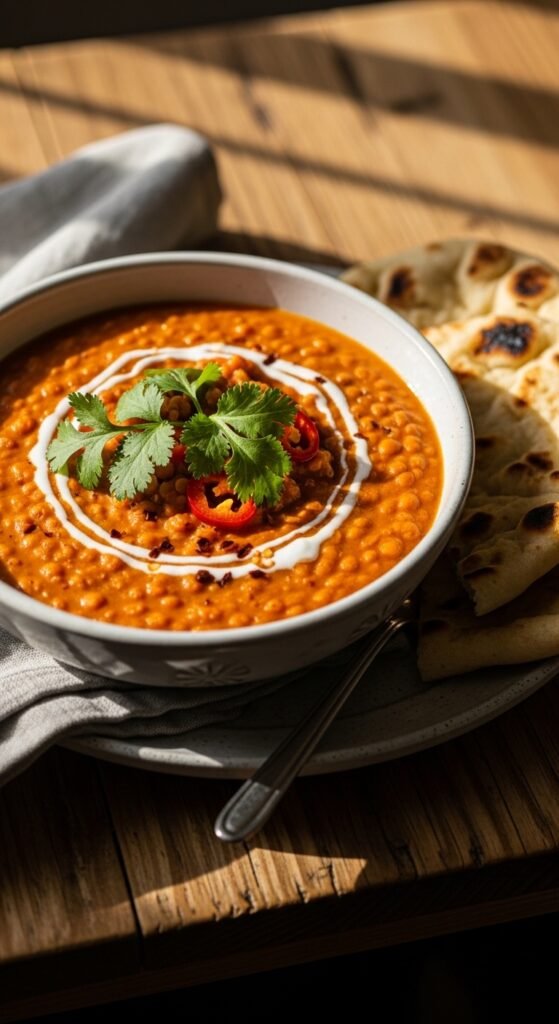 - Add lentils, coconut milk, and broth.