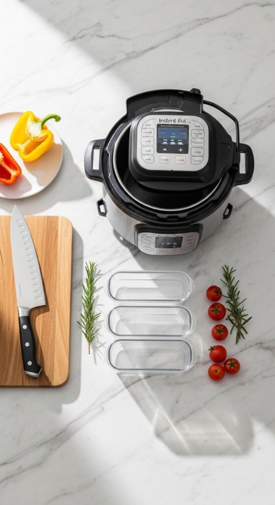 Throughout this article, I have mentioned several tools: a microwave egg cooker, a carbon steel wok, glass meal prep jars, a mini food processor, a non-stick baking sheet, a high-speed blender, and silicone microwave mugs.