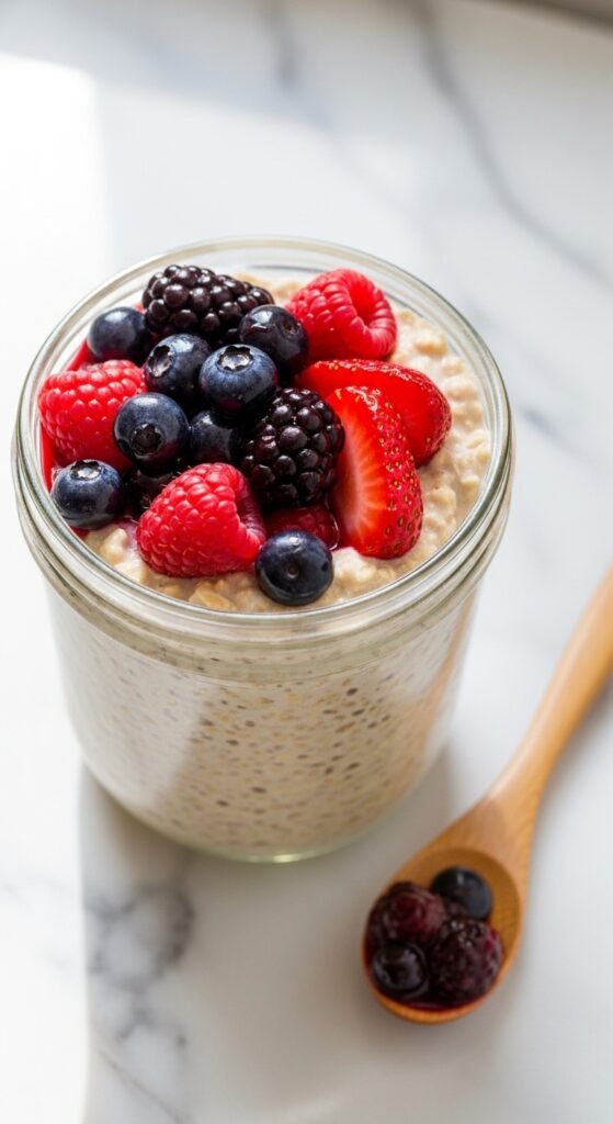 3. Overnight Oats with Berry Compote (Active time: 5 minutes)