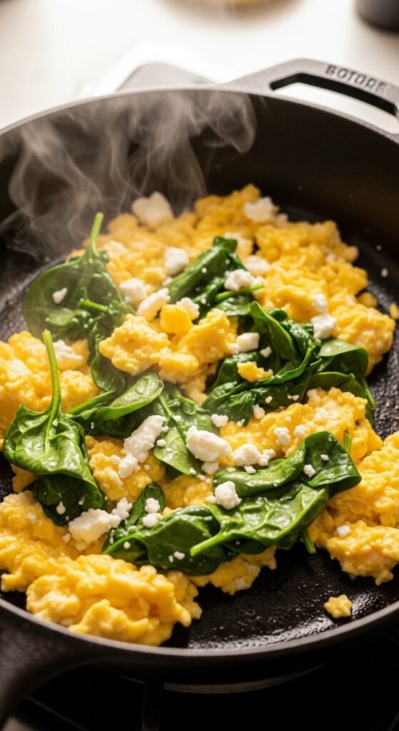 4. Spinach & Feta Scrambled Eggs (7 minutes)