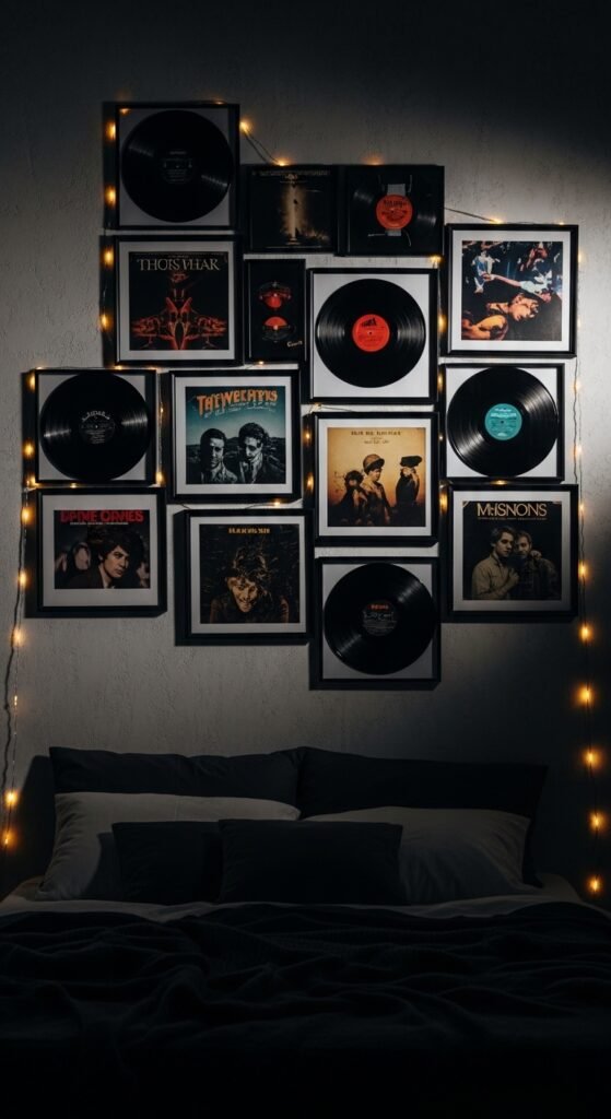 Vinyl records are not just for listening anymore. Displaying your favorite album covers is a nostalgic and personal wall decor idea.