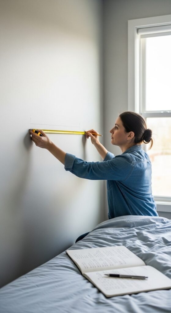 Grab a tape measure. Note the width and height of the empty wall. Pro tip: Your wall decor should occupy 60-75% of the width of the furniture below it (e.g., headboard or dresser).