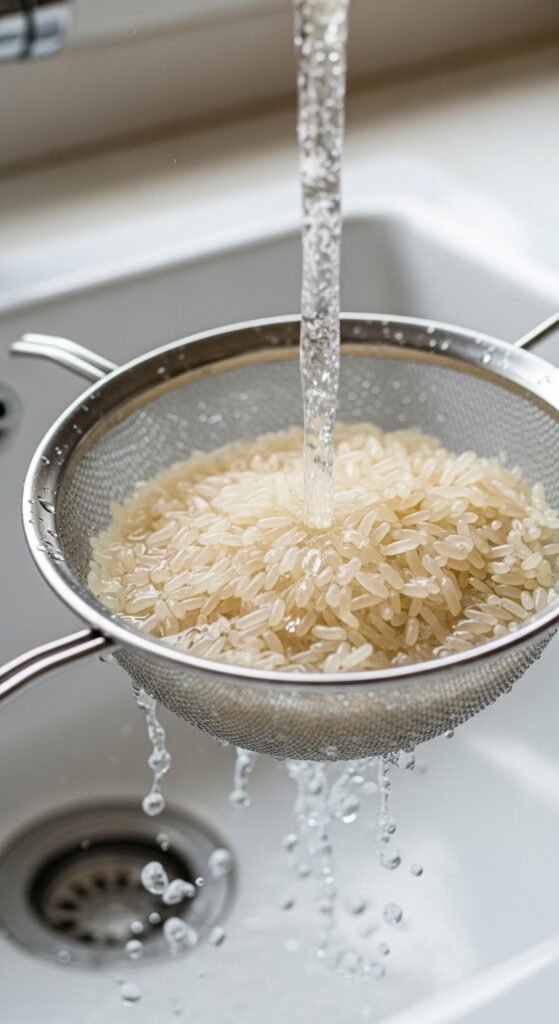 Most cooking tutorials tell you to rinse rice until the water runs clear. Do not do that here.