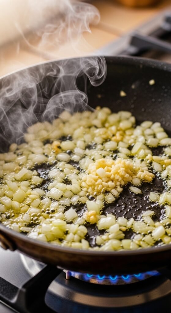 Cook the onions for 3‑4 minutes until they are translucent, not brown. Brown = bitter. Translucent = sweet.