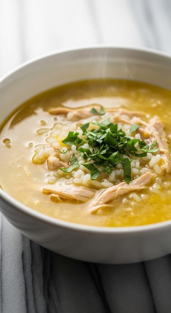 2. Greek Lemon Rice with Chicken (Avgolemono Soup Base)