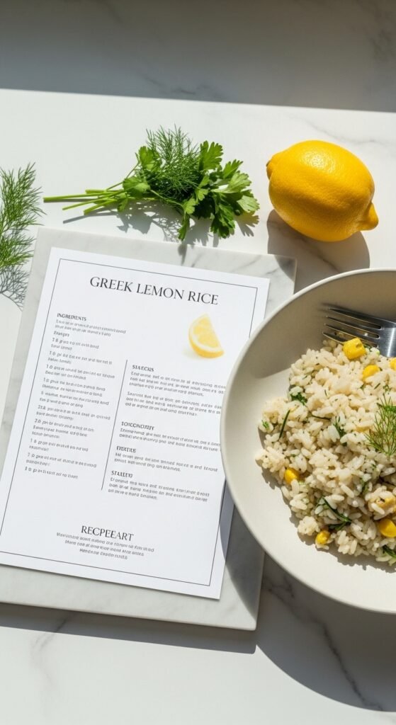 The Printable Greek Rice Recipe Card (Summary)