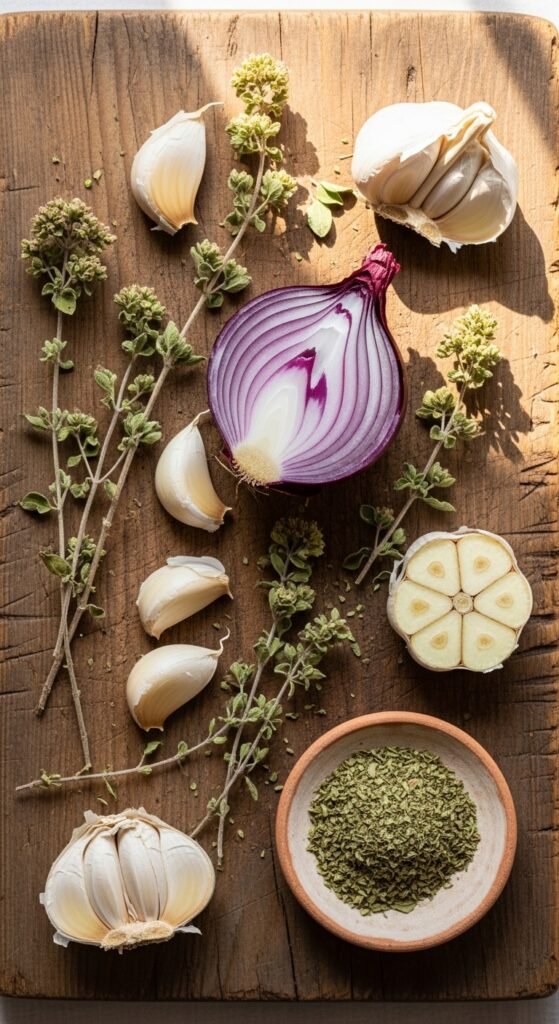 5. The Aromatics: Onion, Garlic, and Dried Oregano