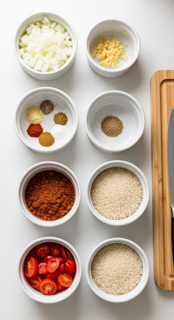 A quick anecdote: The first time I taught my sister this Spanish rice recipe, she skipped the prep step. Halfway through cooking, she was frantically chopping onions while her garlic burned in the pan. The result? Bitter, acrid rice that she ended up throwing away. Don’t be like my sister. Prep first, cook second.