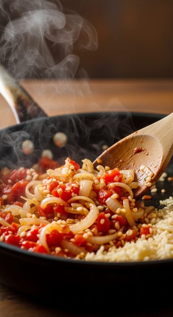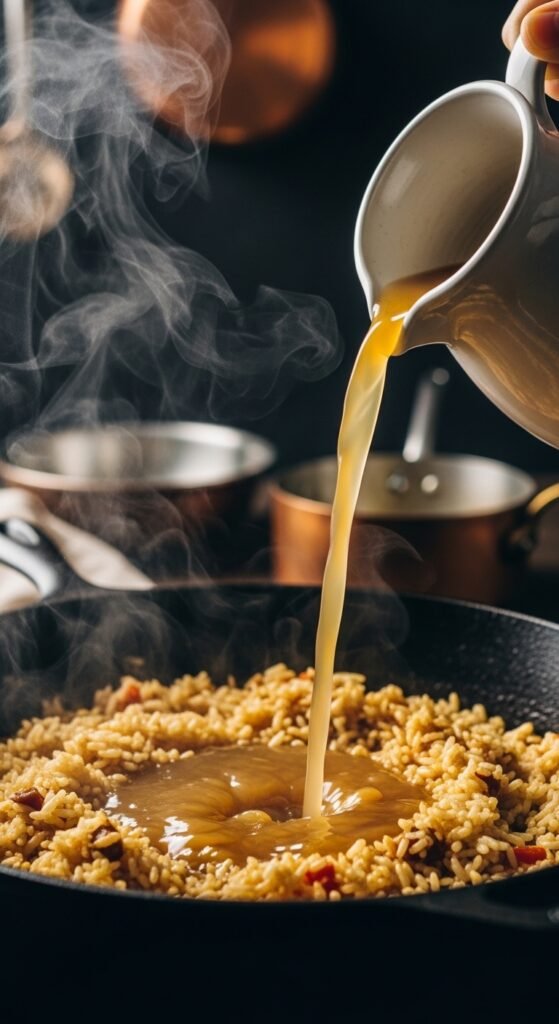 Now, here’s the key: Don’t stir constantly. Let the rice sit undisturbed for about 2 minutes. You want the grains on the bottom to start turning golden brown and nutty-smelling.