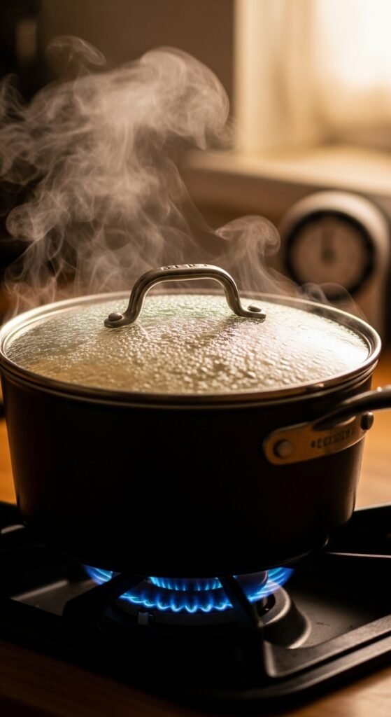 Once boiling, reduce the heat to the lowest possible setting (this is usually “low” on most stovetops). Cover your pot with a tight-fitting lid.