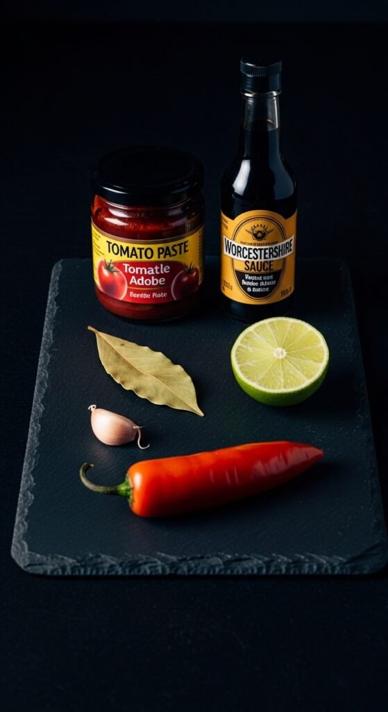 - 1 tablespoon of tomato paste (this intensifies the tomato flavor dramatically)