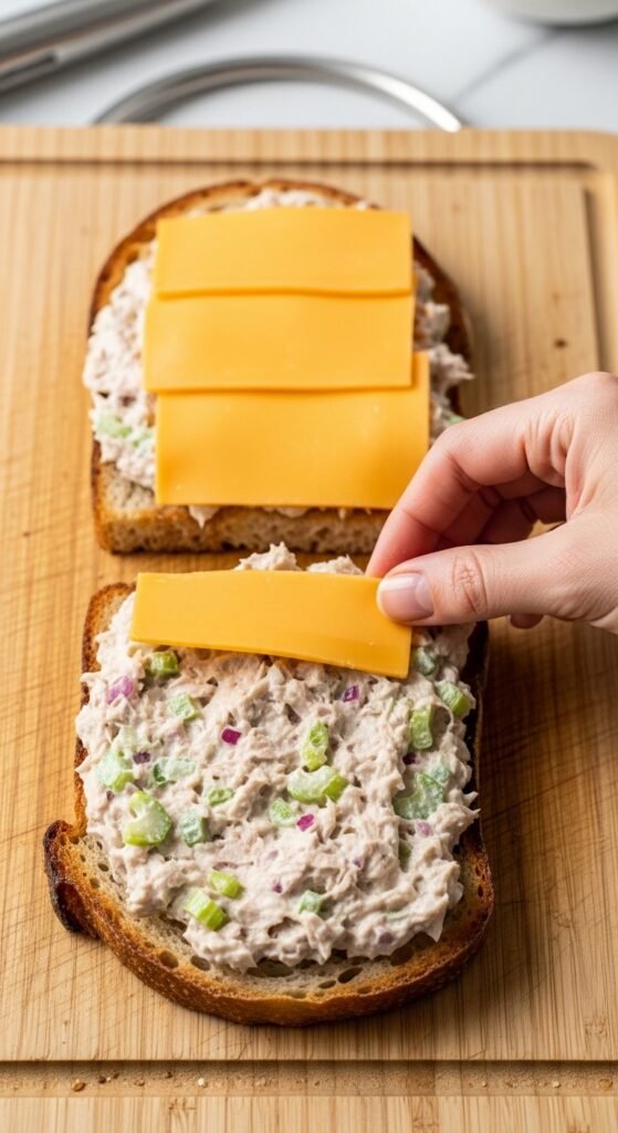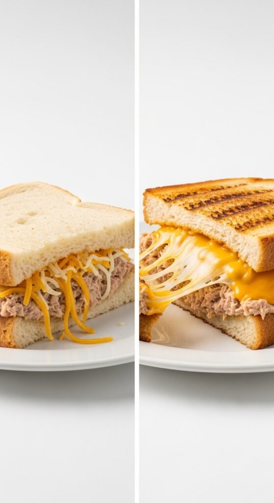 Why this method works: By toasting the bottom bread with cheese underneath the tuna, you create a moisture barrier. The bottom cheese melts into the bread’s pores, preventing the tuna juices from making the bread soggy. You are essentially building a cheese-lined boat.