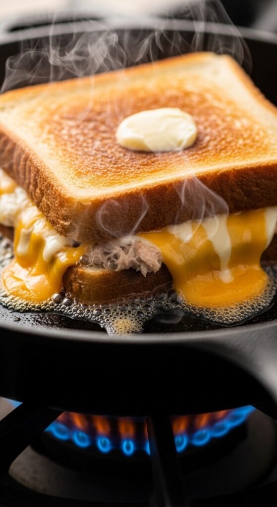 Desperation, as they say, is the mother of invention. I had no recipe. I had no training. But I had a hot skillet and a dream. I mixed the tuna with a glob of mayo, a squirt of yellow mustard that squeaked out of the plastic bottle, and a handful of shredded cheese. I slapped it between the bread, buttered the outside like I was greasing a squeaky door, and threw it in the pan.